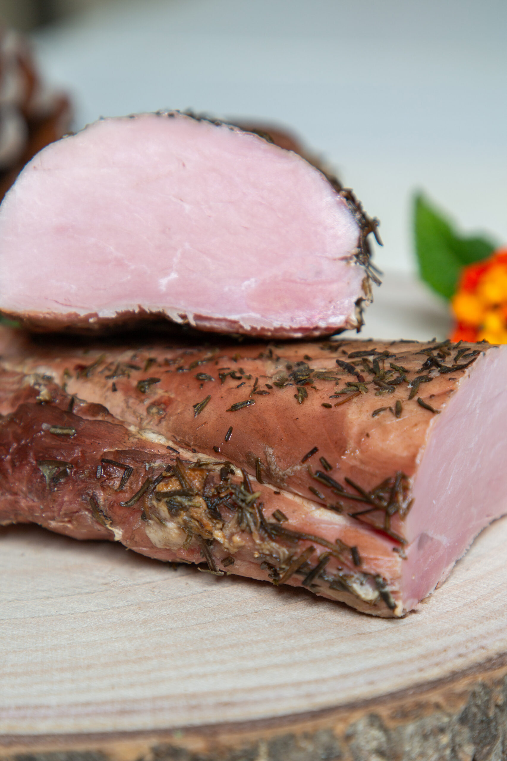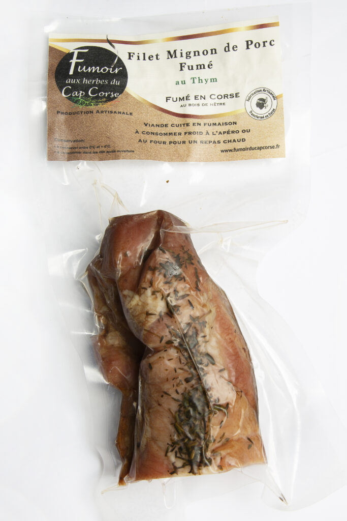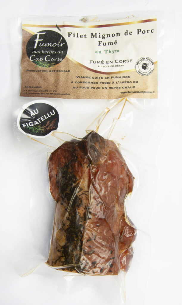 Fumé à froid au bois de hêtre, aromatisé au thym et romarin.